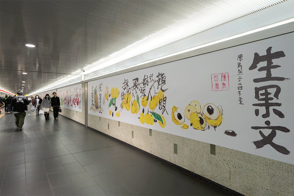 元町・中華街駅の中華街・山下公園改札を出て、1番出口方面に向かう右側に作品が展示されています。