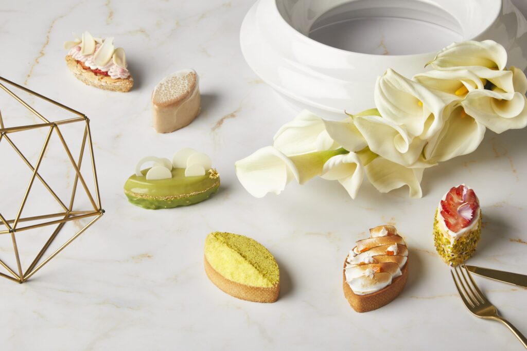 横浜トリエンナーレをご覧になったあとはお近くのホテルやカフェで一息ついてみてはいかがでしょうか?下記店舗にて、第8回横浜トリエンナーレ「野草:いま、ここで⽣きてる」からインスピレーションを受けた限定スイーツをお楽しみいた