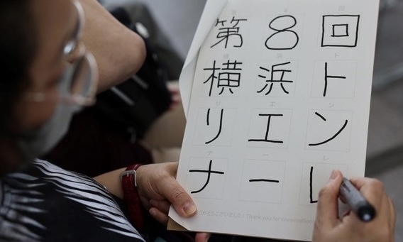 横浜トリエンナーレ組織委員会では、第8回横浜トリエンナーレのデザイナーを岡﨑真理子に決定しました。岡﨑の発案により、タイポグラフィーに用いられている文字は、横浜市民の方々や市内の大学生など約200人の協力を得て集めた手書きの文字を取り入れて作成されました。